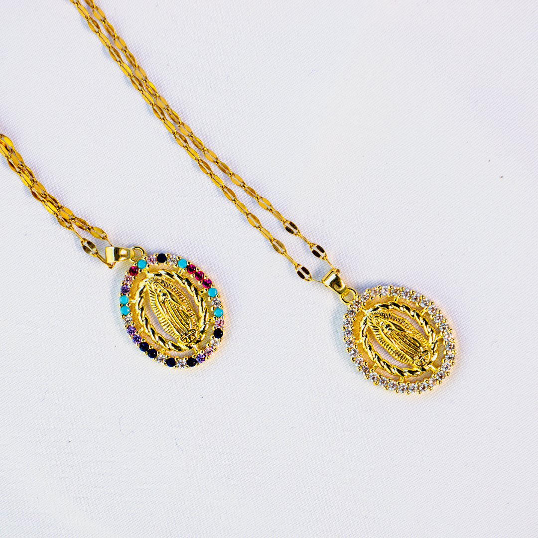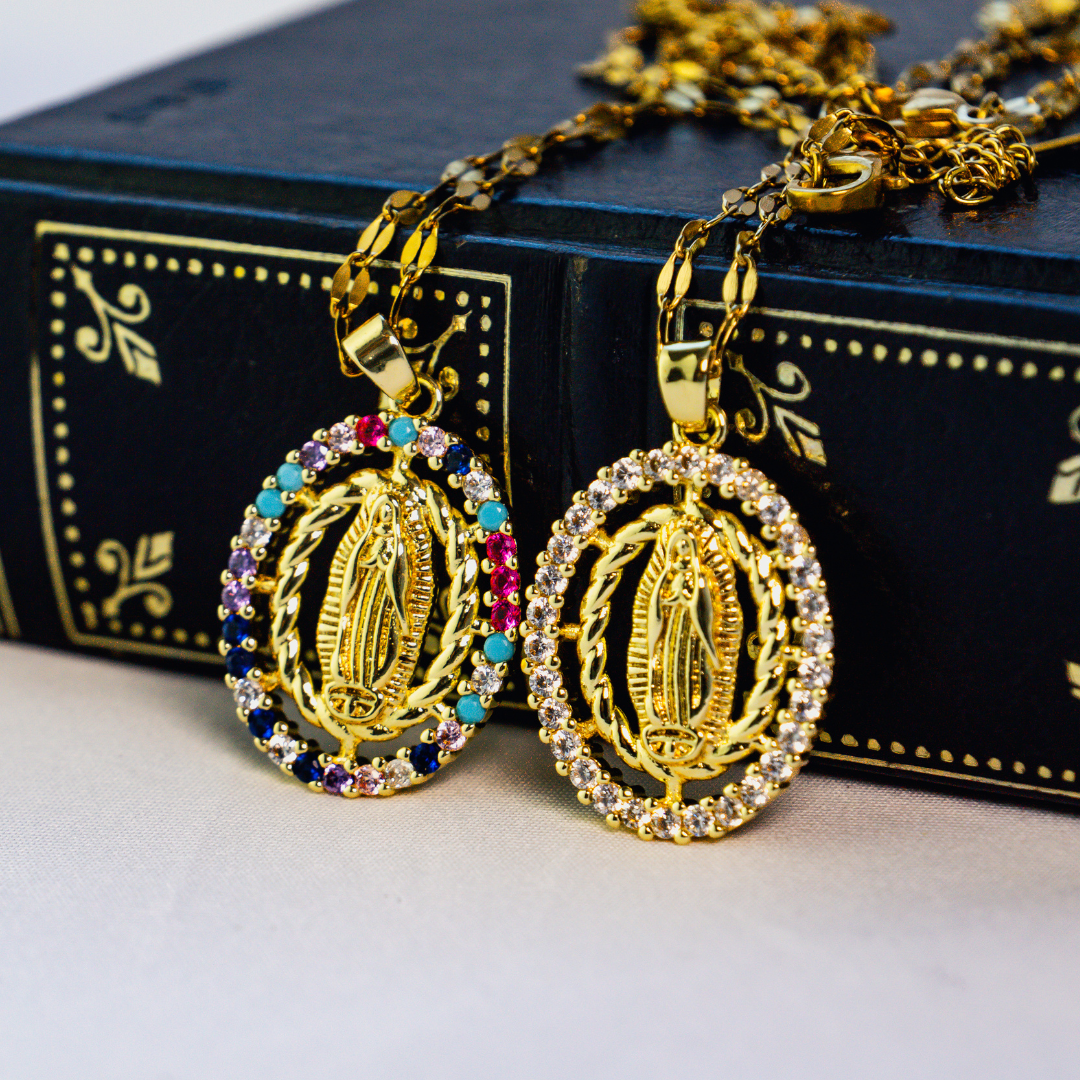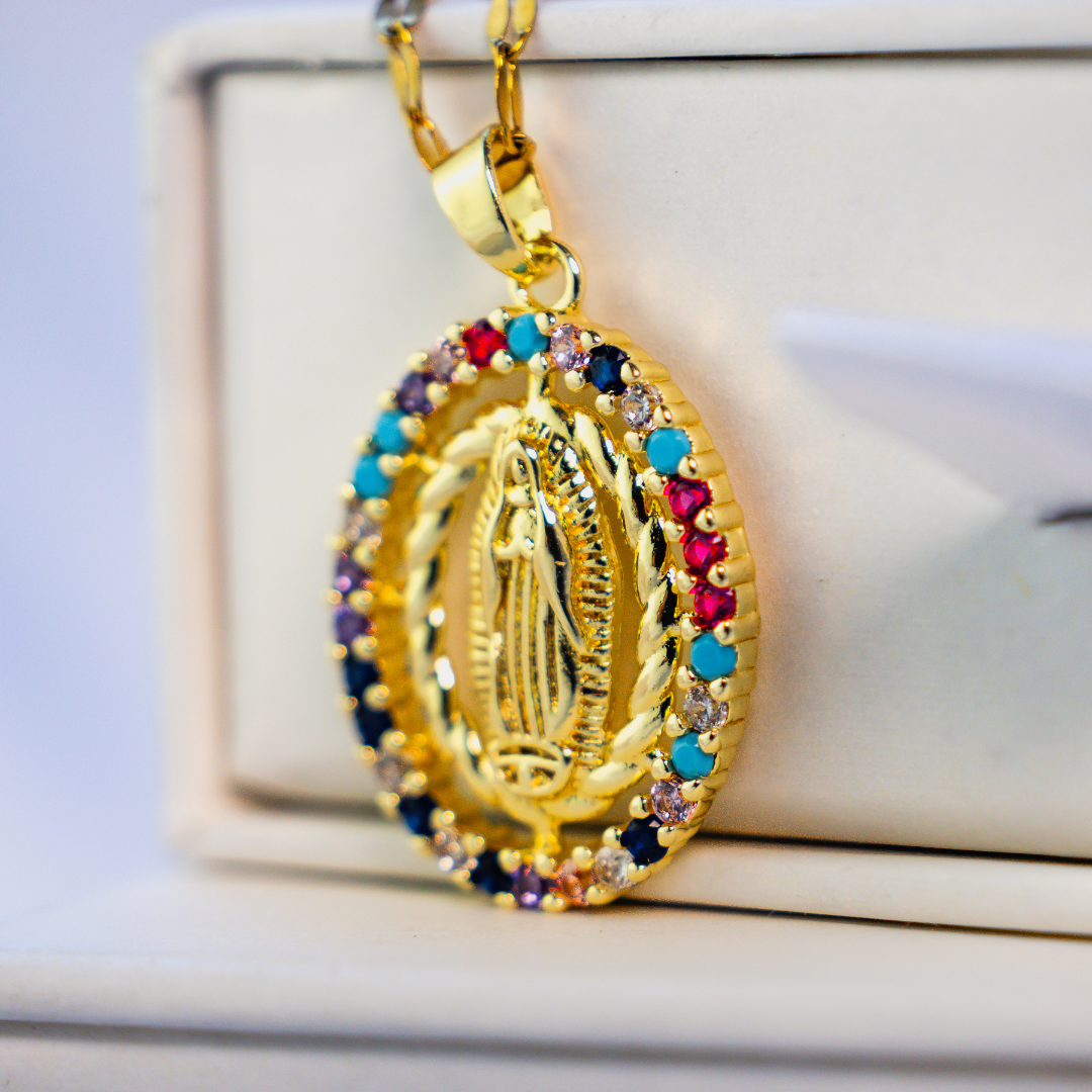 Il suo ciondolo rappresenta la Madonna, portatrice di luce e speranza per chi desidera sentirsi sempre sotto la sua benedizione.